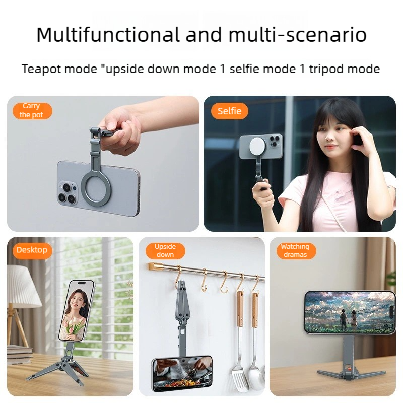 ขาตั้งโทรศัพท์แบบพับได้แม่เหล็ก | การออกแบบตะขอแบบแมงป่องทำจากอลูมิเนียมอัลลอย | แท่นยึดแบบแม่เหล็กสองด้าน + แท่นยึดแบบ Cold Shoe