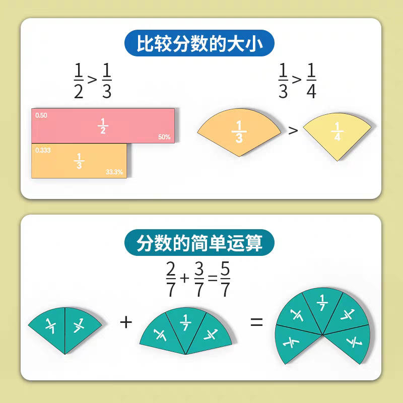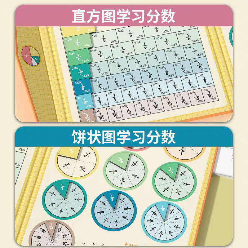 ชุดอุปกรณ์ช่วยสอนเศษส่วนแม่เหล็ก 102 ชิ้น สำหรับการเรียนรู้คณิตศาสตร์ ชั้นประถมศึกษาปีที่ 3 ของเล่นเสริมพัฒนาการทางคณิตศาสตร์สำหรับเด็ก