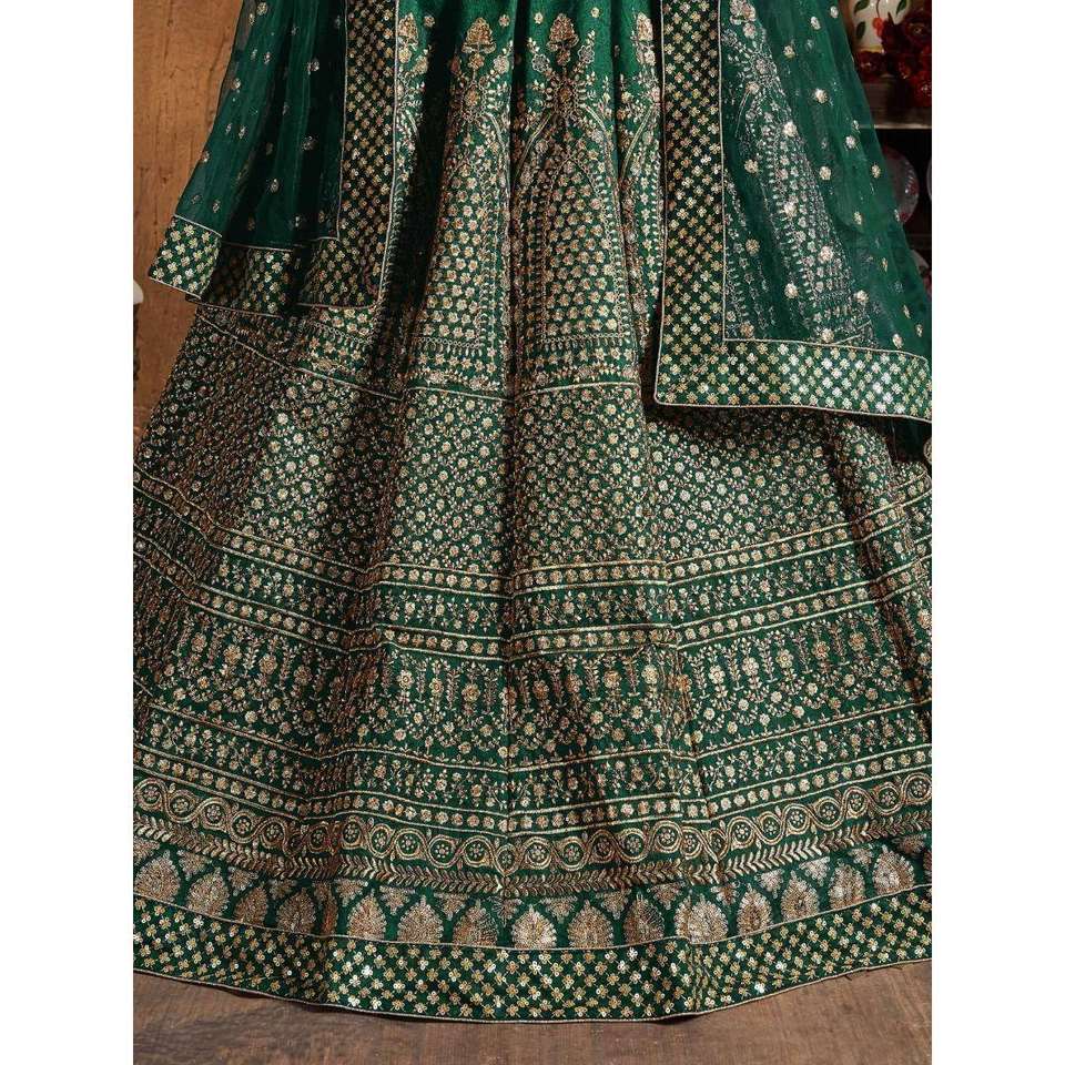 ชุดแต่งงานผ้าไหมดิบปักเลื่อมสีเขียวแม่เหล็ก