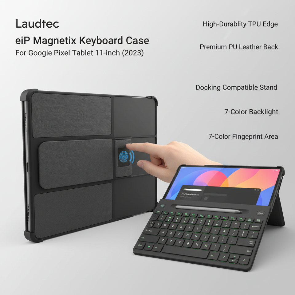 เคสคีย์บอร์ดแม่เหล็กสำหรับแท็บเล็ต Google Pixel ขนาด 11 นิ้ว ปรับมุมได้ ลำโพงแบบถอดได้ แท่นวางแบบพกพา ไฟแบ็คไลท์ Laudtec