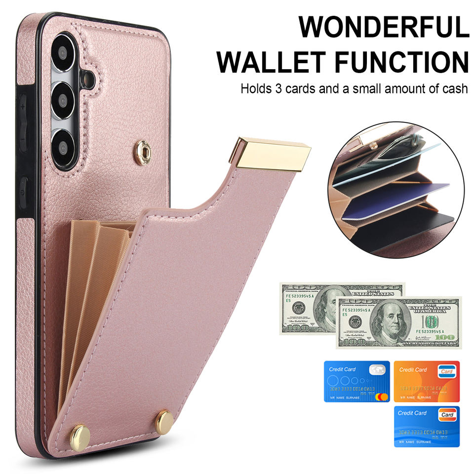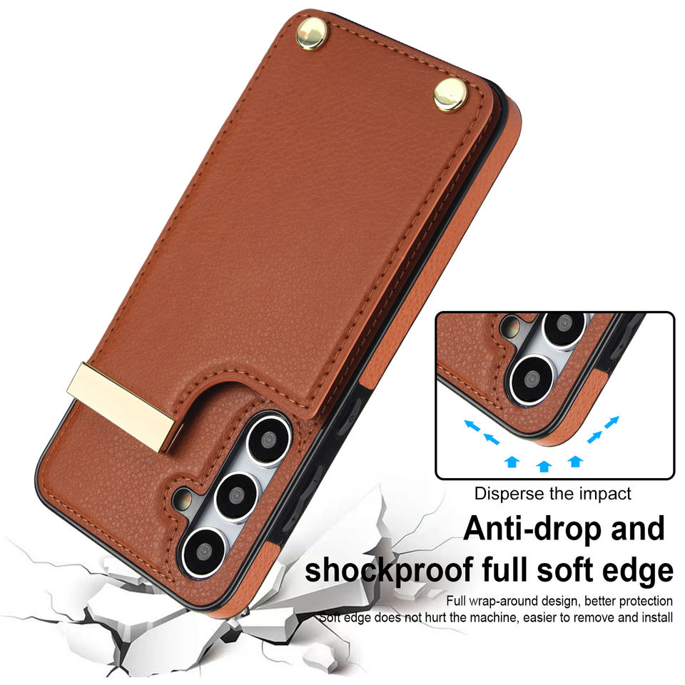 แม่เหล็กหนังกันกระแทกผู้ถือบัตรเคสโทรศัพท์กระเป๋าสตางค์ปกหลังสําหรับSamsung S24 สําหรับiPhone 15 Pro Max