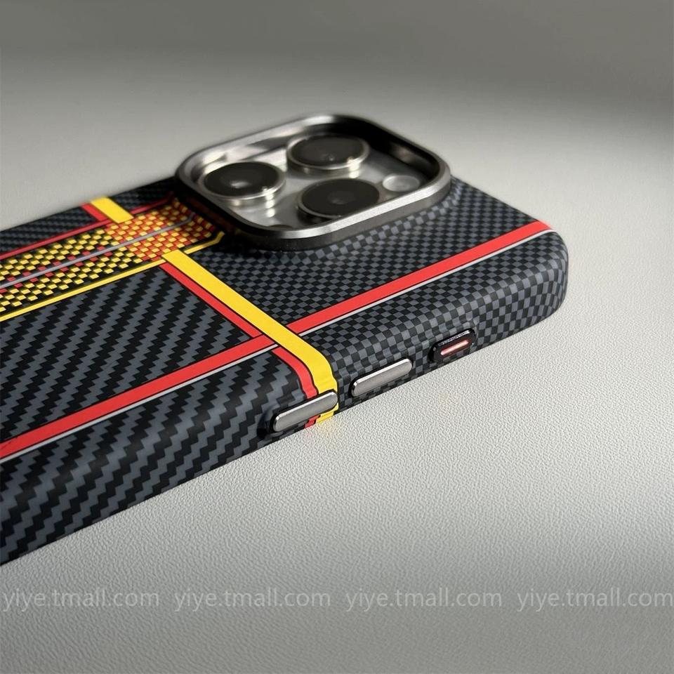 เคสโทรศัพท์แม่เหล็กพร้อมกรอบกล้องโลหะ รองรับการชาร์จไร้สาย เคสโทรศัพท์ลายคาร์บอนไฟเบอร์ สำหรับ iPhone 17 Pro Max 16 15
