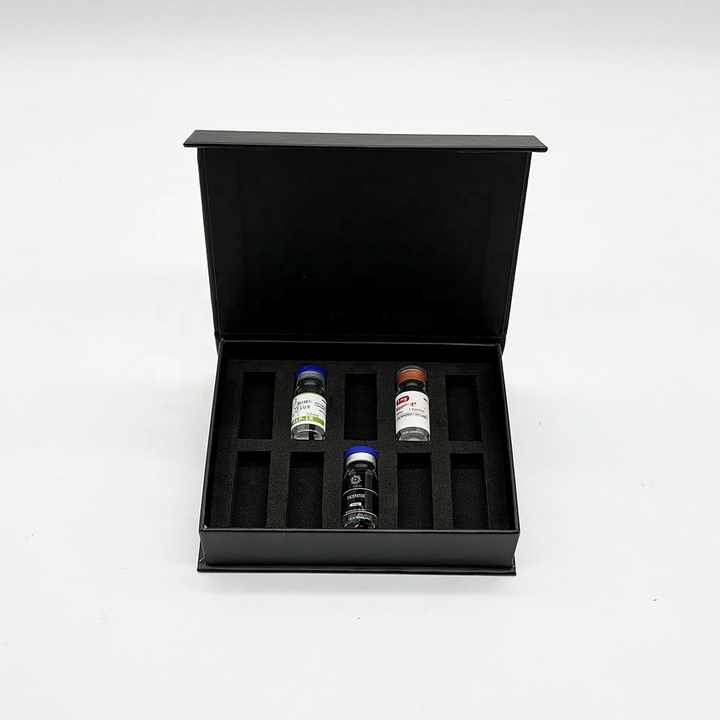 กล่องบรรจุภัณฑ์ขวดเปปไทด์แม่เหล็ก กล่องเปปไทด์ปั๊มฟอยล์โฮโลแกรมสำหรับขวดขนาด 3 มล. จำนวน 10 ขวด