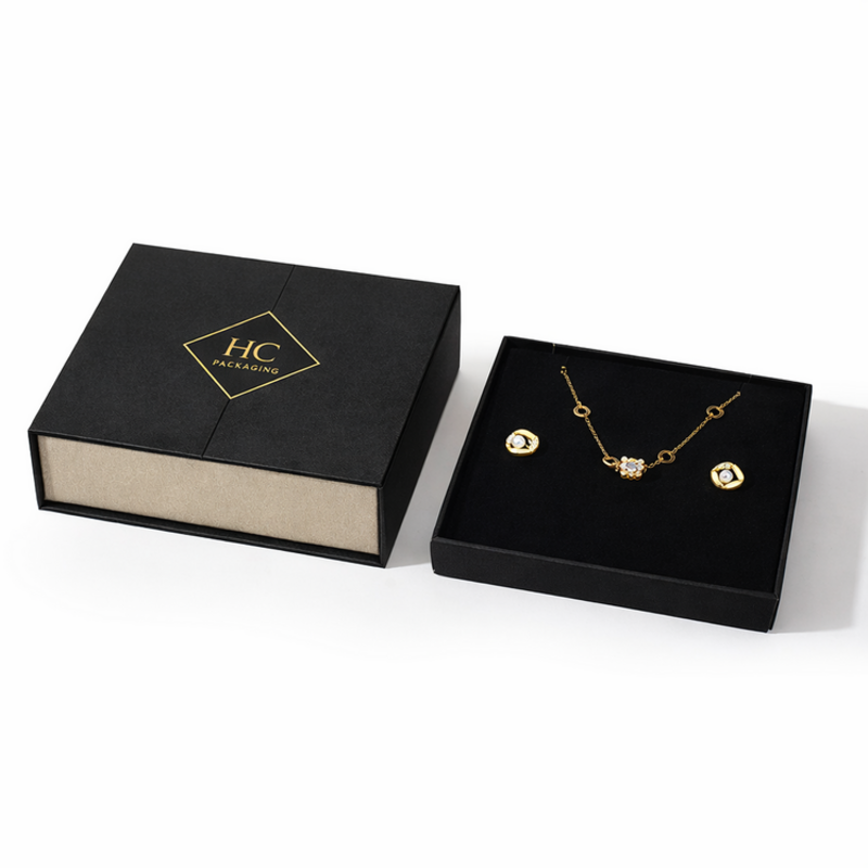 กล่องใส่เครื่องประดับแบบแข็งแม่เหล็กเคลือบเงาและด้าน บรรจุภัณฑ์กระดาษสำหรับต่างหู แหวน สร้อยคอ กำไลข้อมือ และแว่นตา พร้อมลายนูน