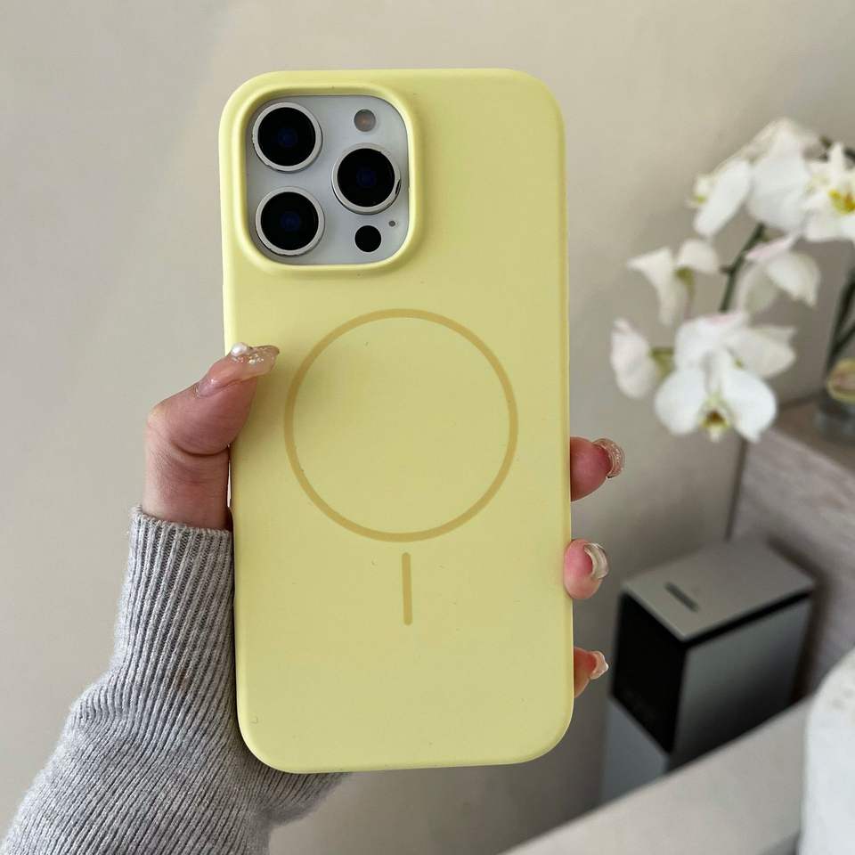 เคสซิลิโคนแม่เหล็กสำหรับ iPhone 12 13 14 15 16 17 Pro Max สัมผัสหรูหรา สไตล์ Ins หลากสี ป้องกันกล้อง
