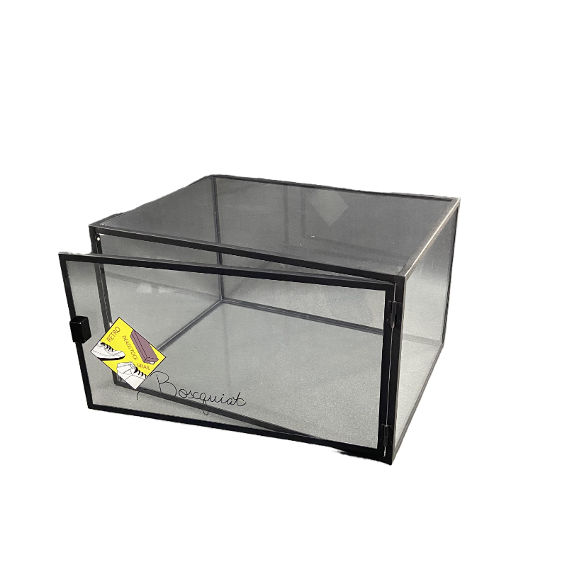 กล่องเก็บรองเท้าแบบแม่เหล็กซ้อนกันได้ พับเก็บได้ ผลิตจากอะคริลิกใส PET สำหรับจัดแสดงรองเท้าผ้าใบ