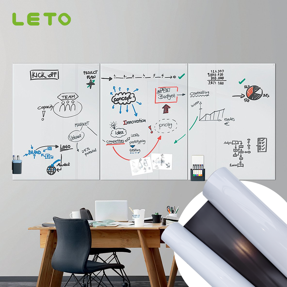 ฟิล์มไวท์บอร์ดแม่เหล็ก-กันน้ำและทนทาน ไม่มีกาว ใช้ซ้ำได้ สติ๊กเกอร์สำหรับสำนักงานและการสอน สำหรับลบ/เขียน