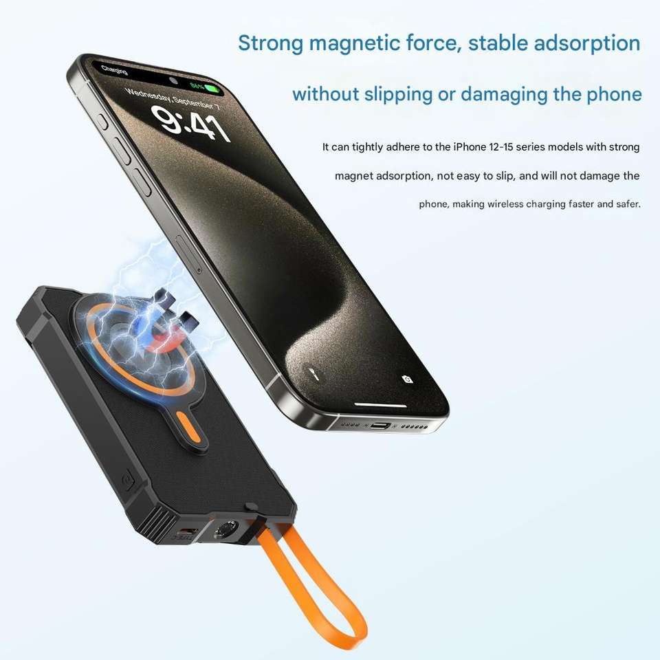 แบตสำรองพลังงานแสงอาทิตย์ไร้สายระบบแม่เหล็ก10000มิลลิแอมป์ชาร์จแบบพกพาได้22.5วัตต์ PD ชาร์จเร็วในตัวสาย LED แสดงผลก้อนแบตเตอรี่