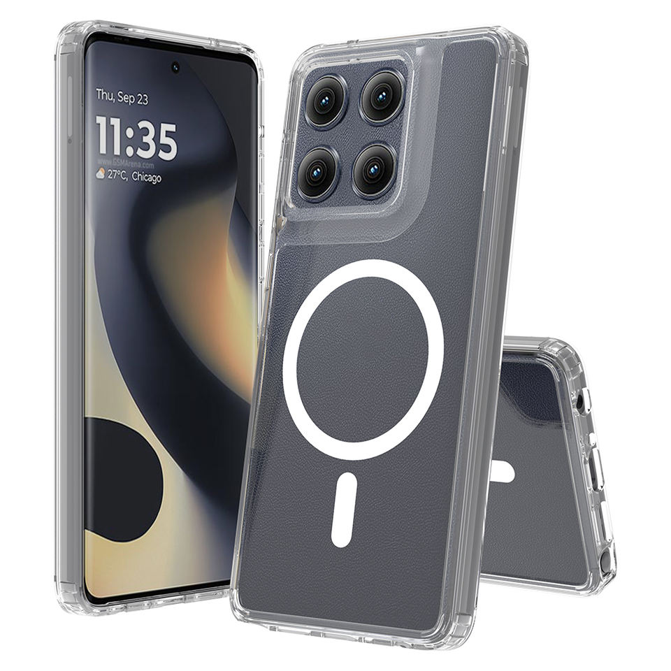 กระเป๋าใส่โทรศัพท์แบบแข็งสีเหลืองป้องกันการกระแทกชาร์จด้วยแม่เหล็ก PC ยืดหยุ่นได้มีที่มุมกันกระแทกป้องกันการตกสำหรับ2025ขอบของ Moto