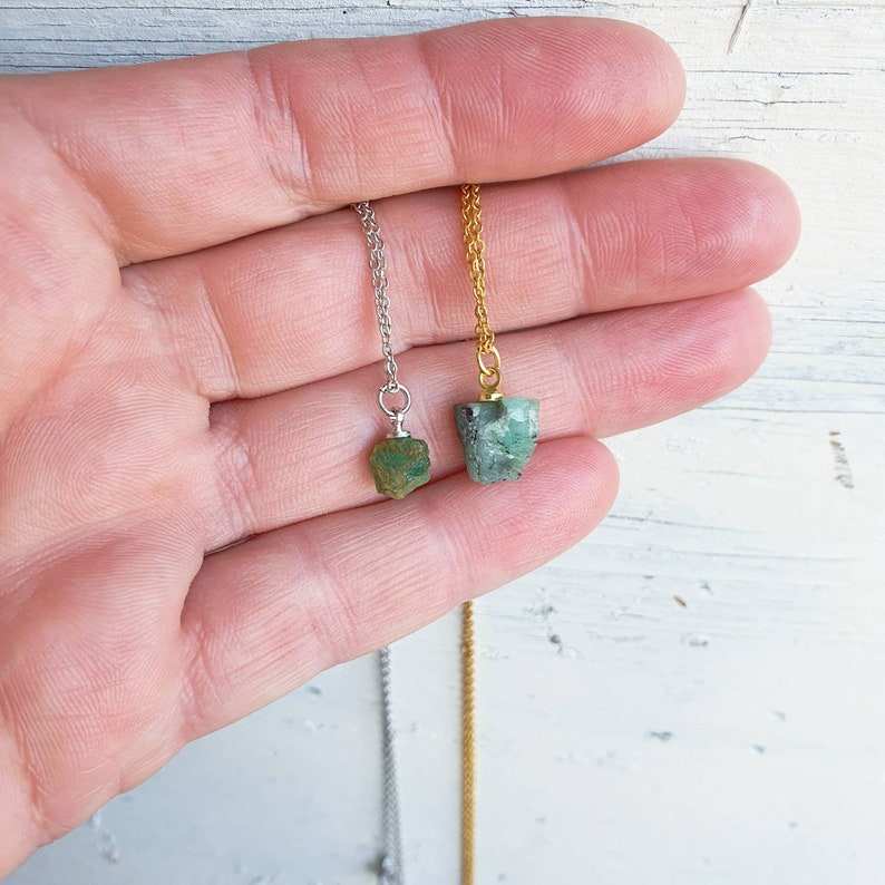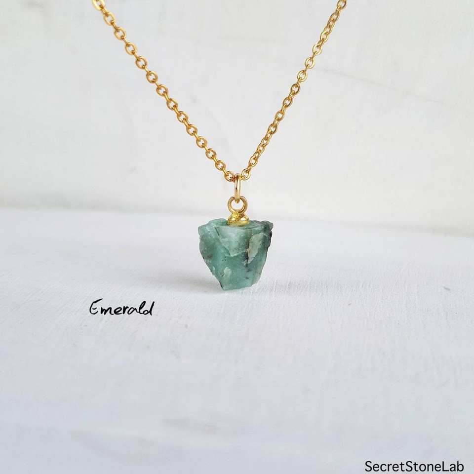 สร้อยคอเสน่ห์ของเงินสเตอร์ลิง92.5งดงามอัญมณีสีเขียวมรกตหยาบจากธรรมชาติไม่ผ่านการบำบัดขายส่ง