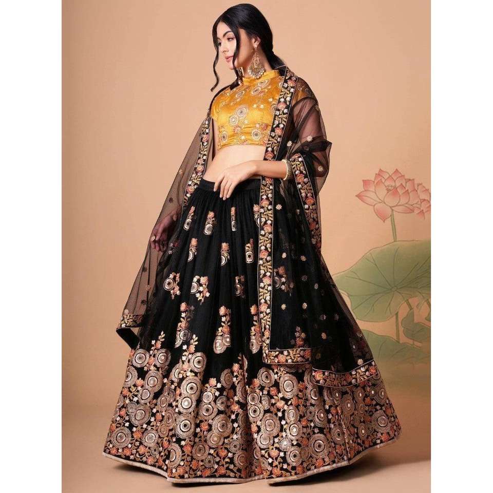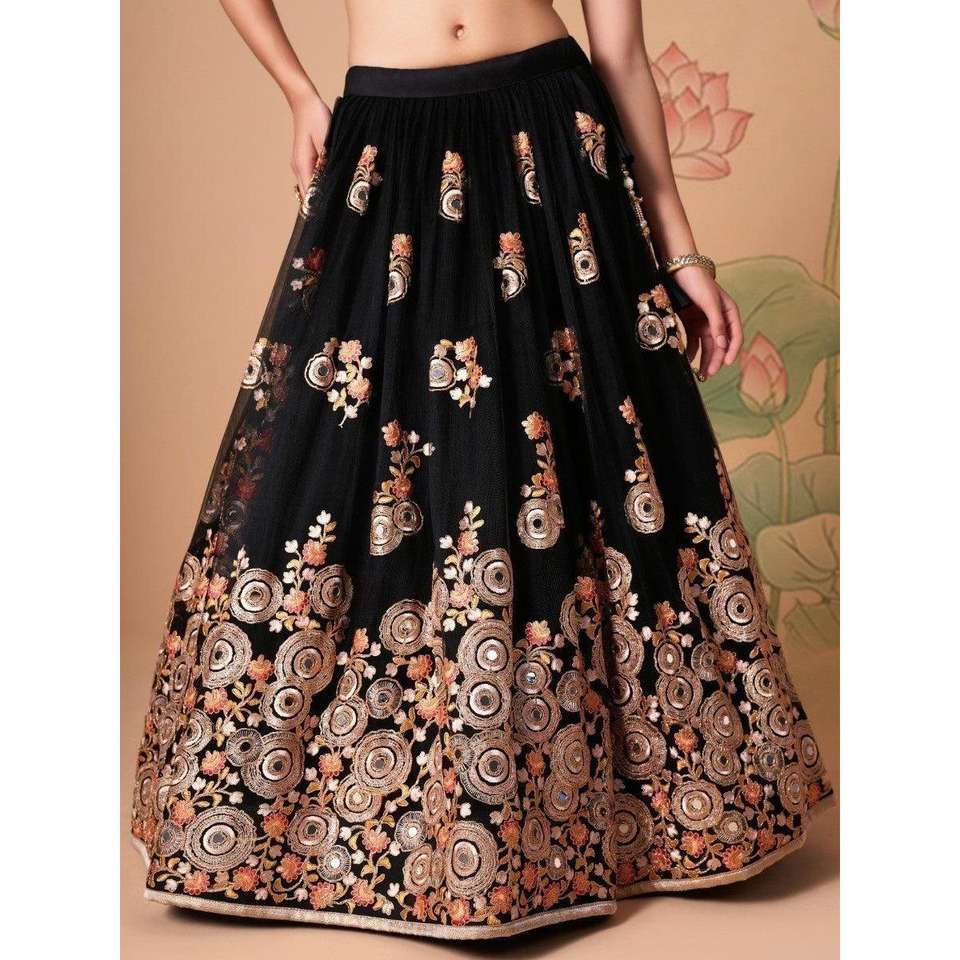 Lehenga choli กระโปรงทำงานกระจกสีดำสุดอลังการ