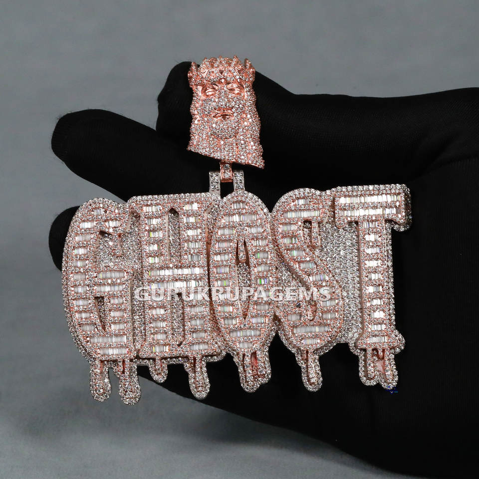จี้เพชรทรงฮิปฮอป925สเตอร์ลิงประกายเพชรทรงกลมและบาแกตต์สำหรับผู้ชายให้เย็นลงอย่างงดงาม