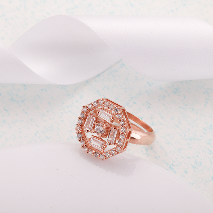 แหวนค็อกเทลสีโรสโกลด์สุดหรูแหวนแฟชั่นหรูหราขนาดใหญ่ดีไซน์หรูหราสำหรับของขวัญแต่งงานงานหมั้น