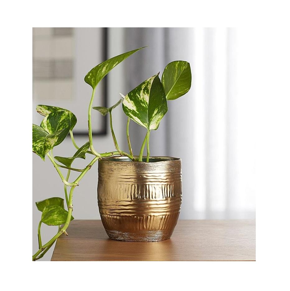 กระถางต้นไม้ทองเหลืองเหล็กดีไซน์ทันสมัย สวยงาม เป็นมิตรกับสิ่งแวดล้อม เหมาะสำหรับตกแต่งทางเข้าบ้านและสวน
