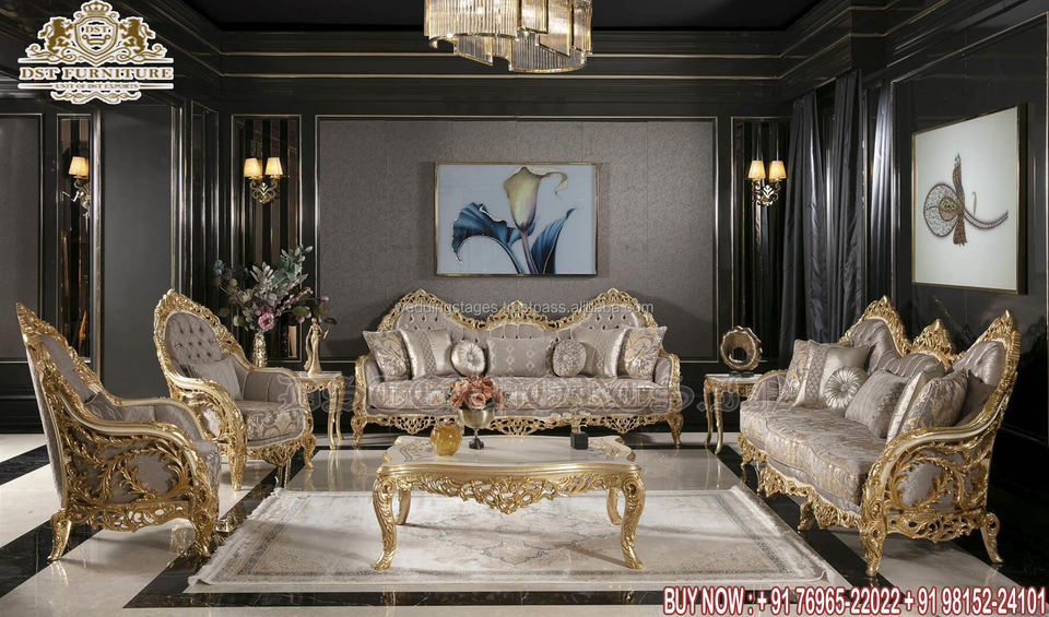 Maharaja HeavyแกะสลักอินเดียโซฟาชุดDesignerไม้สักHandcraftedโซฟาชุดอินเดียไม้แกะสลักห้องวาดภาพโซฟาชุด