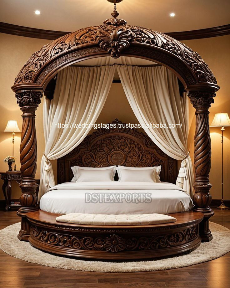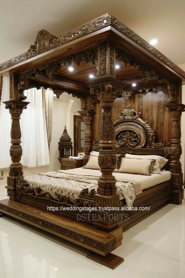 ชุดเฟอร์นิเจอร์ห้องนอนไม้สักสี่เสาสไตล์มหาราชาในลอนดอนดีไซน์ล่าสุดวิลล่าแบบอังกฤษ