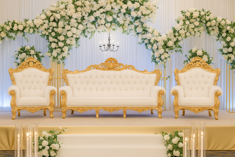 Product name:Maharaja Wedding Event White & Gold Sofa Set