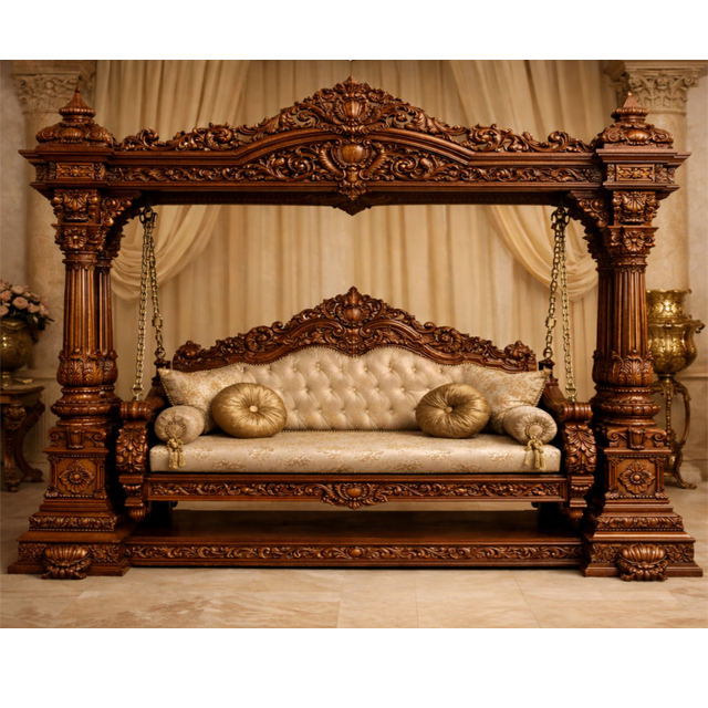 เปลญวนสี่เสาสไตล์พระราชวังมหารานี สำหรับวิลล่าหรู ขายดี งานแกะสลักอย่างประณีต ทำจากไม้เนื้อแข็ง พร้อมเคลือบวอลนัท ลดราคาพิเศษในสหราชอาณาจักร