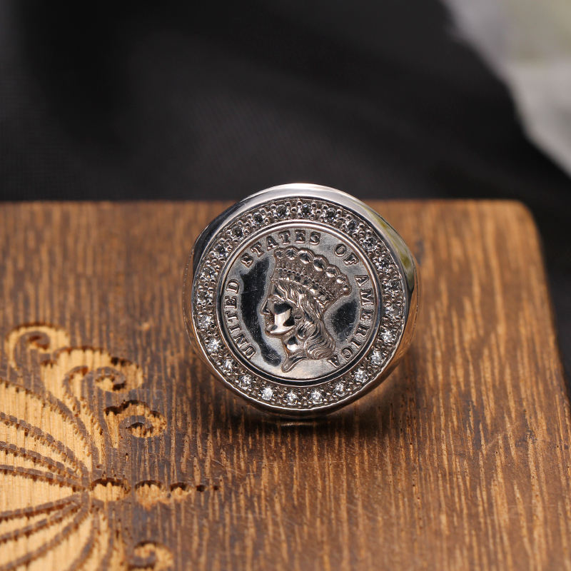 แหวนไอริชแมนสไตล์วินเทจสำหรับผู้ชาย เงินแท้ 925 ประดับเพชรโมอิสซาไนต์ สลักชื่อฟรี ของขวัญขายดีสำหรับเขา เหมาะสำหรับใส่ทุกวัน