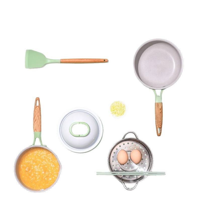 ชุดเครื่องครัวเคลือบหินไมแฟน สีพื้นเรียบง่าย หม้อกันความร้อนพร้อมด้ามจับกันลื่น สำหรับทำอาหารเด็กที่บ้าน