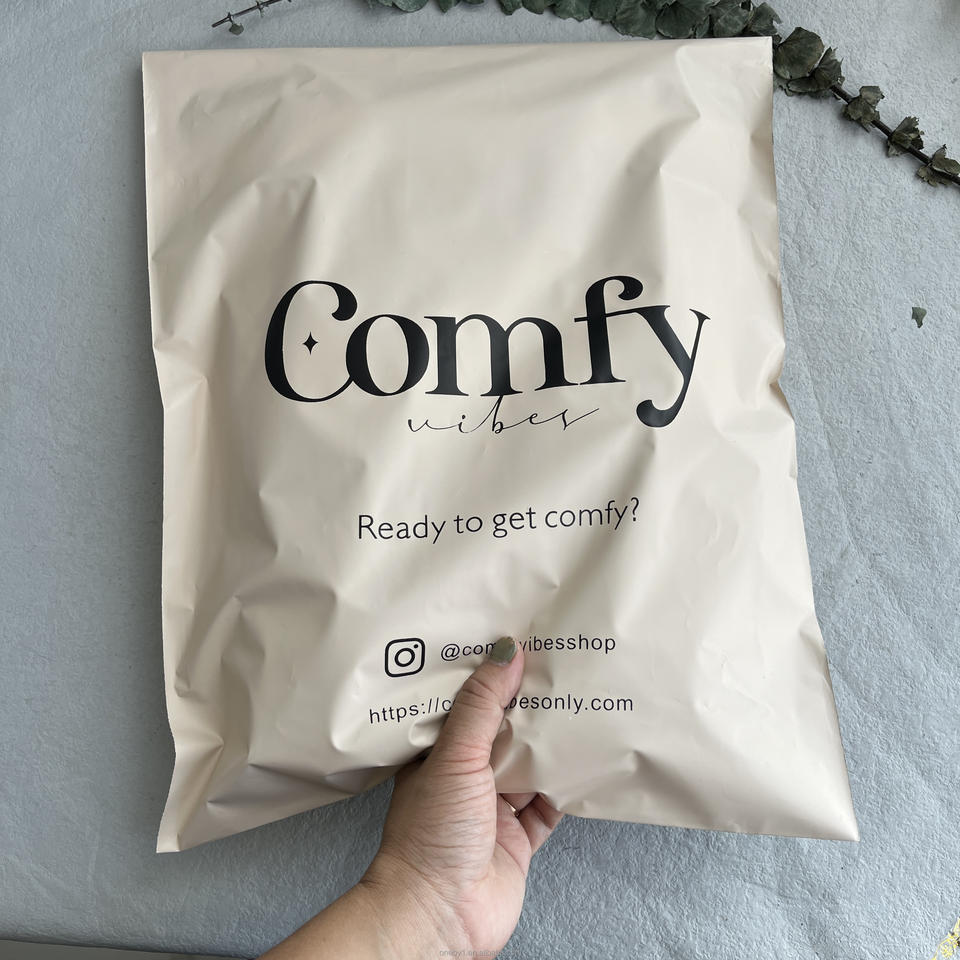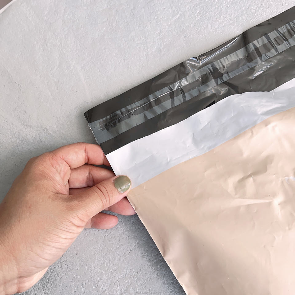 ถุงเมลเลอร์ย่อยสลายได้ สีเบจด้าน ถุงเมลเลอร์สำหรับส่งพัสดุ ถุงโพลีสำหรับส่งสินค้า สำหรับบิกินี่และวิกผม พร้อมโลโก้ของคุณเองแบบกำหนดเอง
