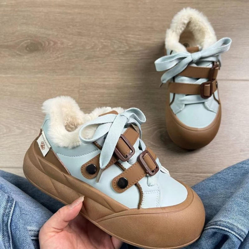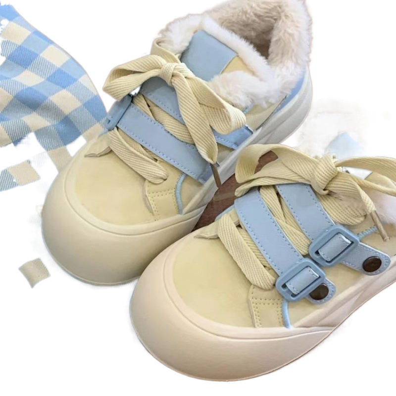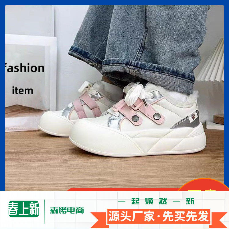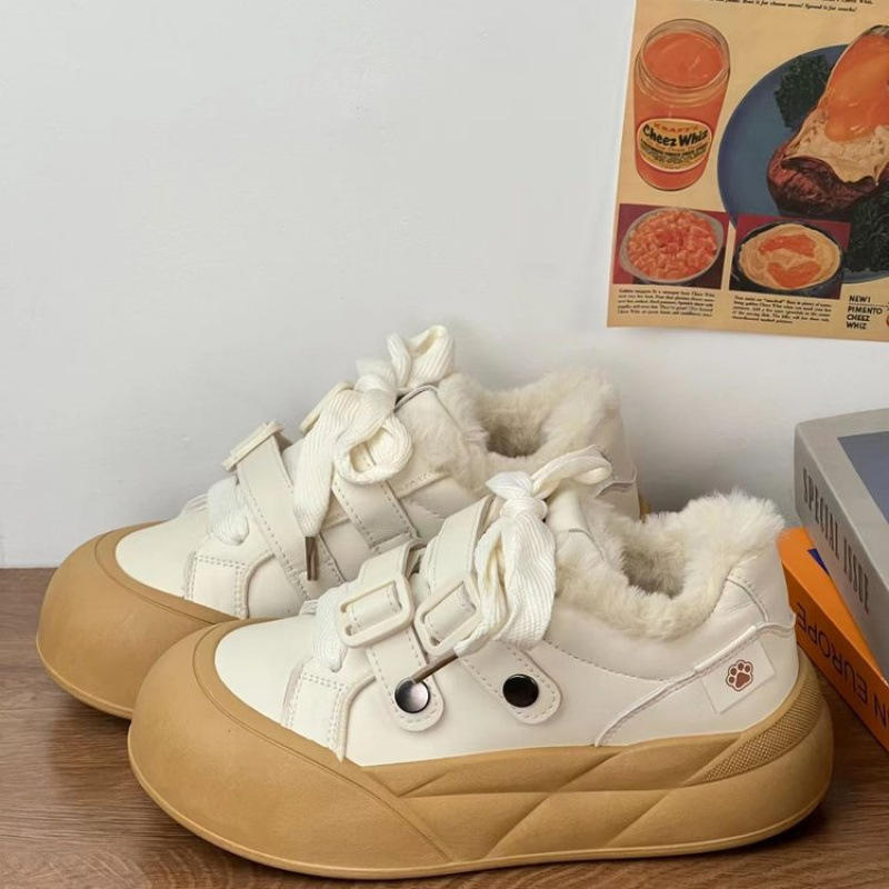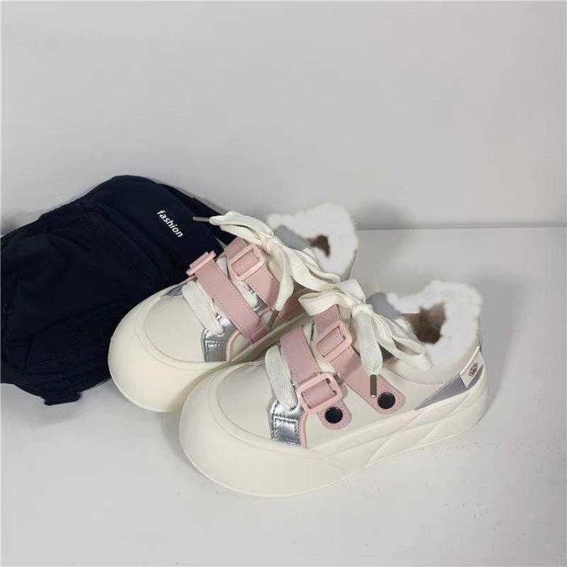รองเท้าผ้าใบพื้นหนานุ่มสีขาวสไตล์ชิคสำหรับผู้หญิง ยี่ห้อ Maillard รุ่น Warm Ugly Little Bread Shoes บุด้วยผ้าฝ้าย เหมาะสำหรับนักเรียน ออกกำลังกาย และเดินเล่น