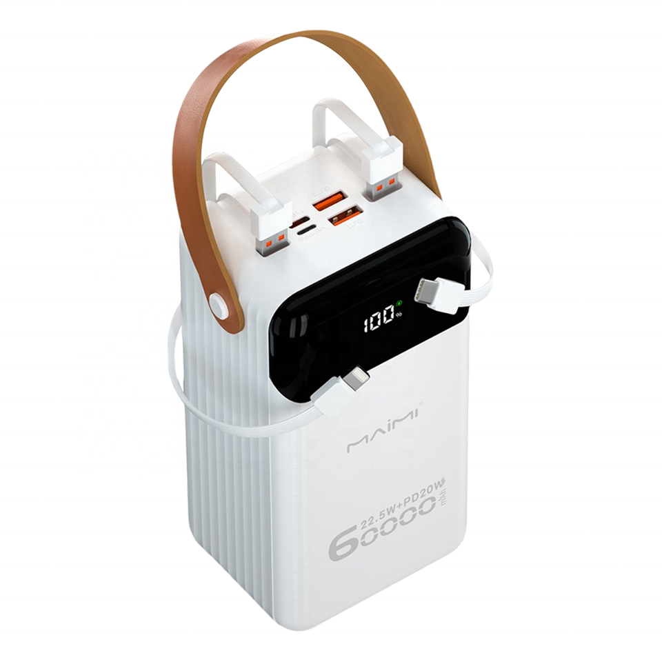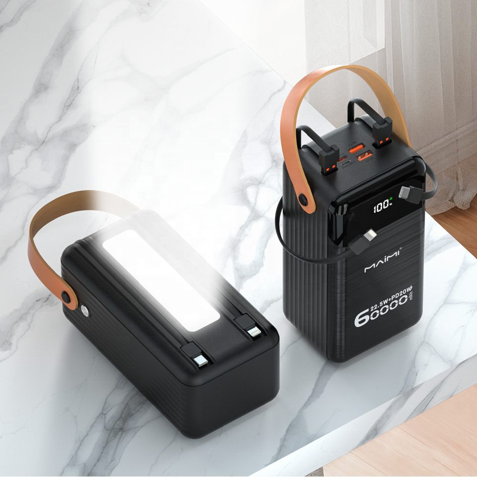 Maimi ไฟฉาย LED 22.5วัตต์ + PD20w ชาร์จเร็ว60000มิลลิแอมป์แบตสำรองกลางแจ้งฉุกเฉินมีสายเคเบิ้ลพาวเวอร์แบงค์ความจุสูง