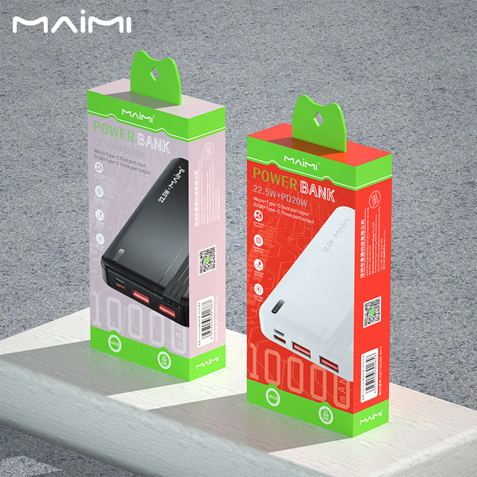 Maimi พาวเวอร์แบงค์แบบพกพา10000มิลลิแอมป์22.5วัตต์สำหรับโทรศัพท์มือถือที่มีคุณภาพสูง USB C PD 20วัตต์ชาร์จเร็ว