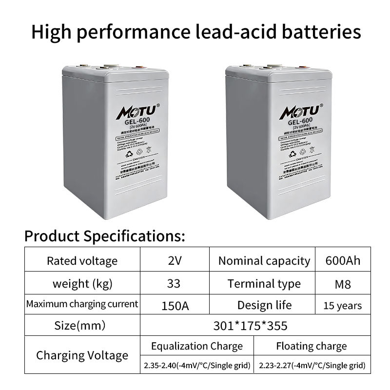 แบตเตอรี่เจล 2V 600Ah แบบไม่ต้องบำรุงรักษา แบตเตอรี่ตะกั่วกรดแบบปิดผนึก สำหรับระบบสำรองไฟฟ้าศูนย์ข้อมูล ระบบควบคุมรถยนต์ไฟฟ้า