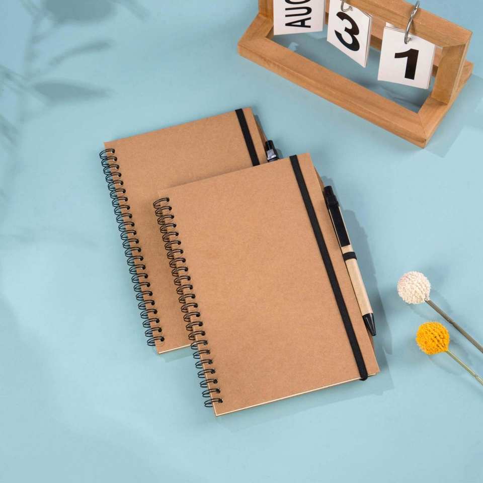 สมุดบันทึกแบบมีห่วง A5 รุ่นวินเทจ Mairun ปกกระดาษคราฟท์ ลายพิมพ์สวยงาม ทนทาน 80 แผ่น รุ่น MR311