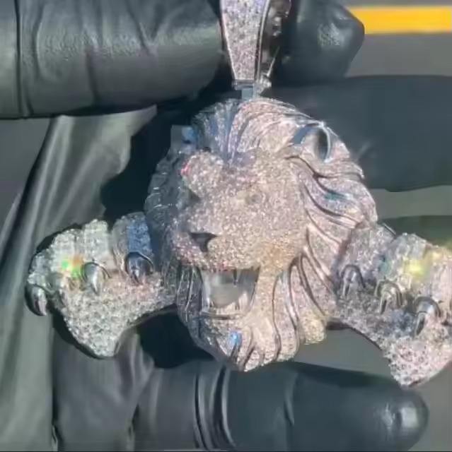 จี้หัวสิงโตสีขาวและสีเงินขนาด14K อันงดงามสำหรับผู้ชายสร้อยคอทรงเพชรโมอิสซาไนต์ทรงกลม5กะรัต