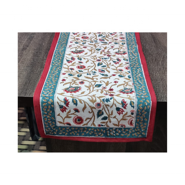 ผ้าปูโต๊ะผ้าฝ้ายปักลายดอกไม้สีแดงเทศกาลรับประทานอาหารทำจาก100% 120 GSM 72นิ้วอินเดียได้รับการรับรองจากกอต OEM