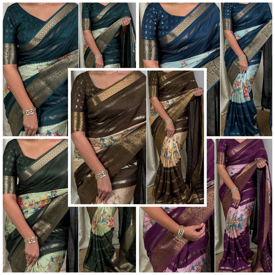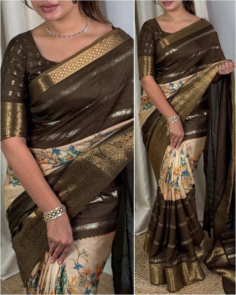 คอลเลคชั่น2025สารีพิมพ์ลายดิจิทัลมอสแจ็คการ์ด Zari สำหรับโอกาสพิเศษของอินเดียทำให้ทุกช่วงเวลาพิเศษ