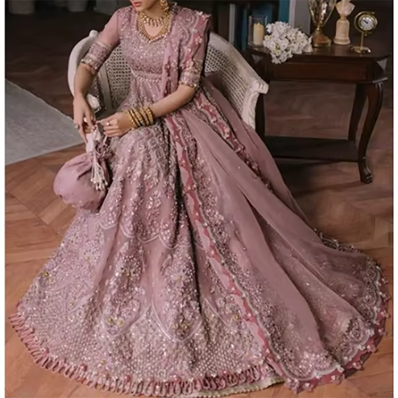 ชุดเจ้าสาวปรับแต่งได้สำหรับผู้หญิงสไตล์ปากีสถานอินเดียปักลายขนาดใหญ่พิเศษ