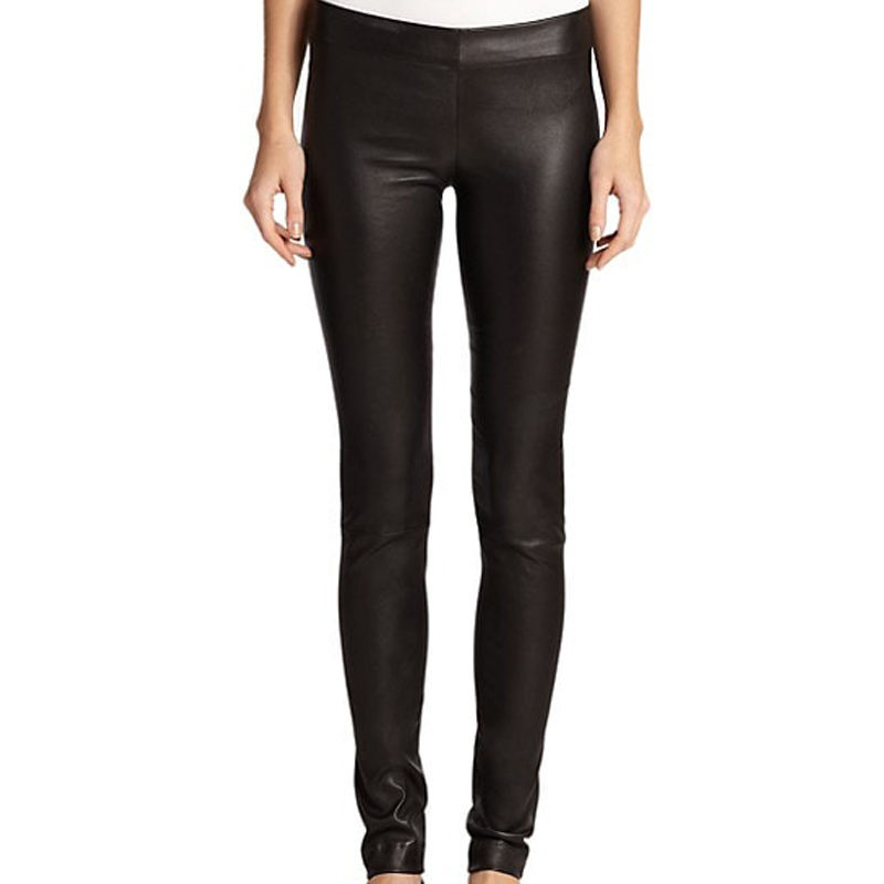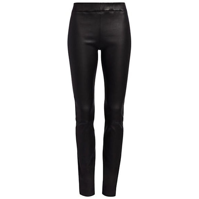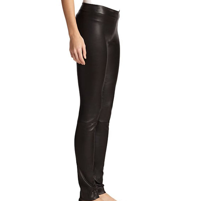 กางเกงหนังพียูจับจีบสำหรับผู้หญิงสไตล์บอดี้คอนเอวสูงมีระบายชายเสื้อ
