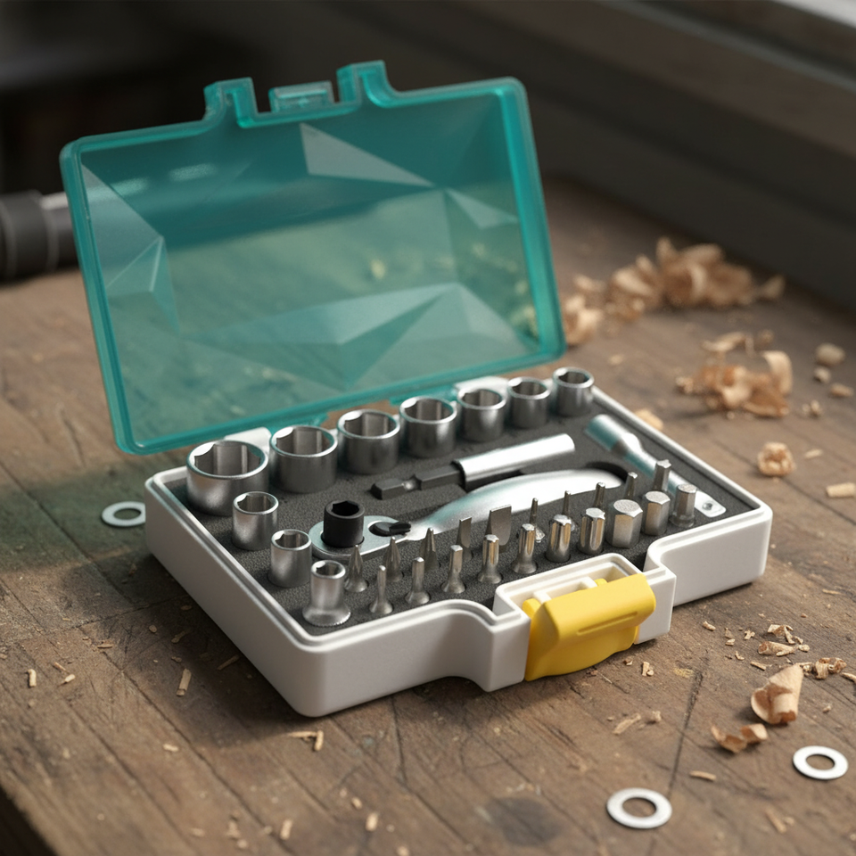 ซ็อกเก็ตบิต, แถบขยาย, ที่จับวงล้อ, ซ็อกเก็ต, ที่ใส่ดอกไขควงแม่เหล็กอุปกรณ์ที่รวมอยู่