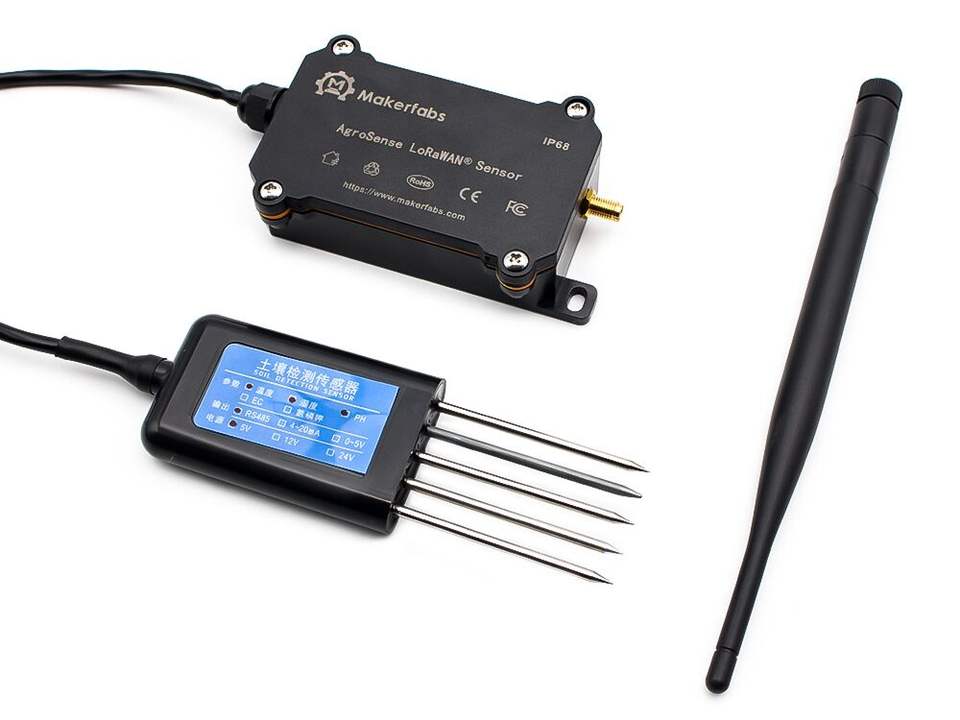 เครื่องตรวจวัดดิน AgroSense ของ Makerfabs ระบบ LoRaWAN (ความชื้น/อุณหภูมิ/ค่า pH/ค่า EC) ออกแบบมาเพื่อใช้งานในสภาพแวดล้อมที่รุนแรง บันทึกข้อมูลได้ 3K รายการ รุ่น D151