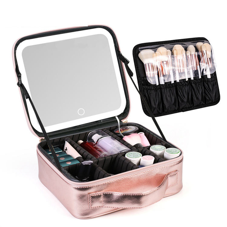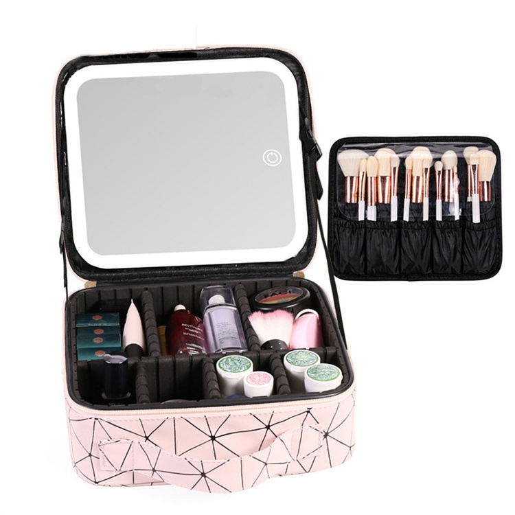 กระเป๋าแต่งหน้าชุดแปรงแต่งหน้าพร้อมกระเป๋ากระเป๋ากระเป๋ากระเป๋าสมาร์ทวอชพร้อมกระจก LED กระเป๋าเครื่องสำอาง