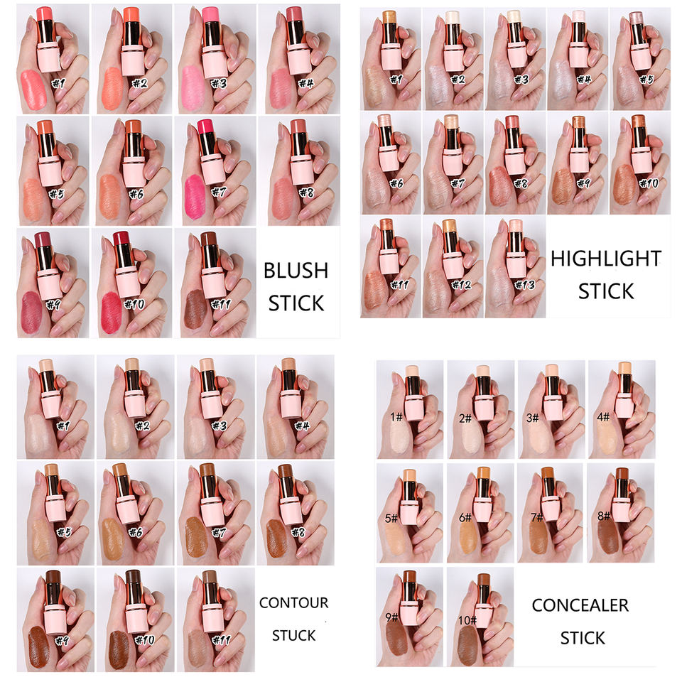 ครีมแต่งหน้าคอนทัวร์เครื่องสำอางสีชมพูแท่งไฮไลท์เนื้อครีมเคลือบเงา