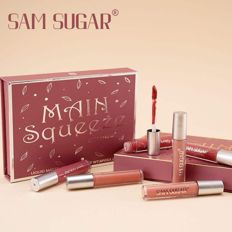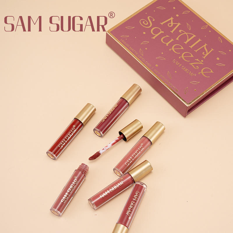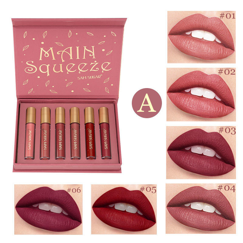 ชุดกล่องของขวัญลิปกลอส6ชิ้นแบบเมคอัพย้อมสีง่ายสีสดใส