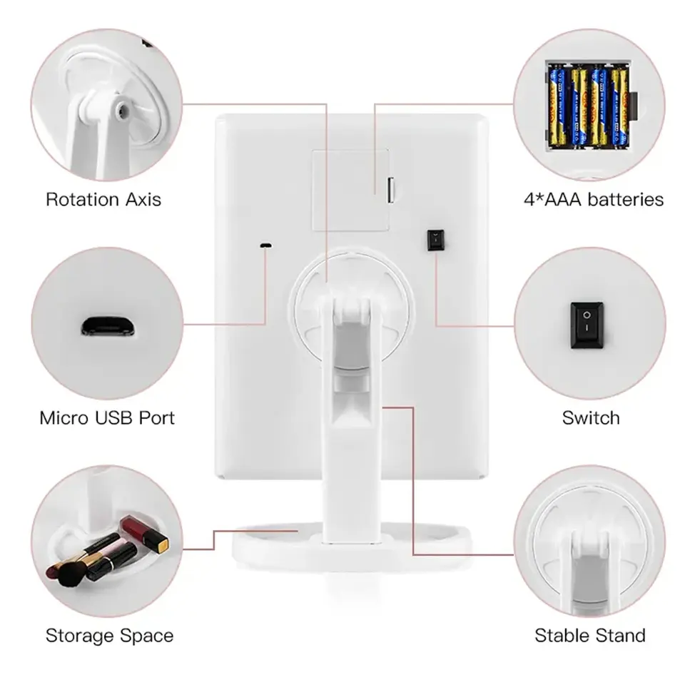 กระจกโต๊ะเครื่องแป้งแต่งหน้ามีไฟปรับความสว่างได้1X/2X/ขยาย3X หน้าจอสัมผัสพับสามทบของขวัญสำหรับผู้หญิง