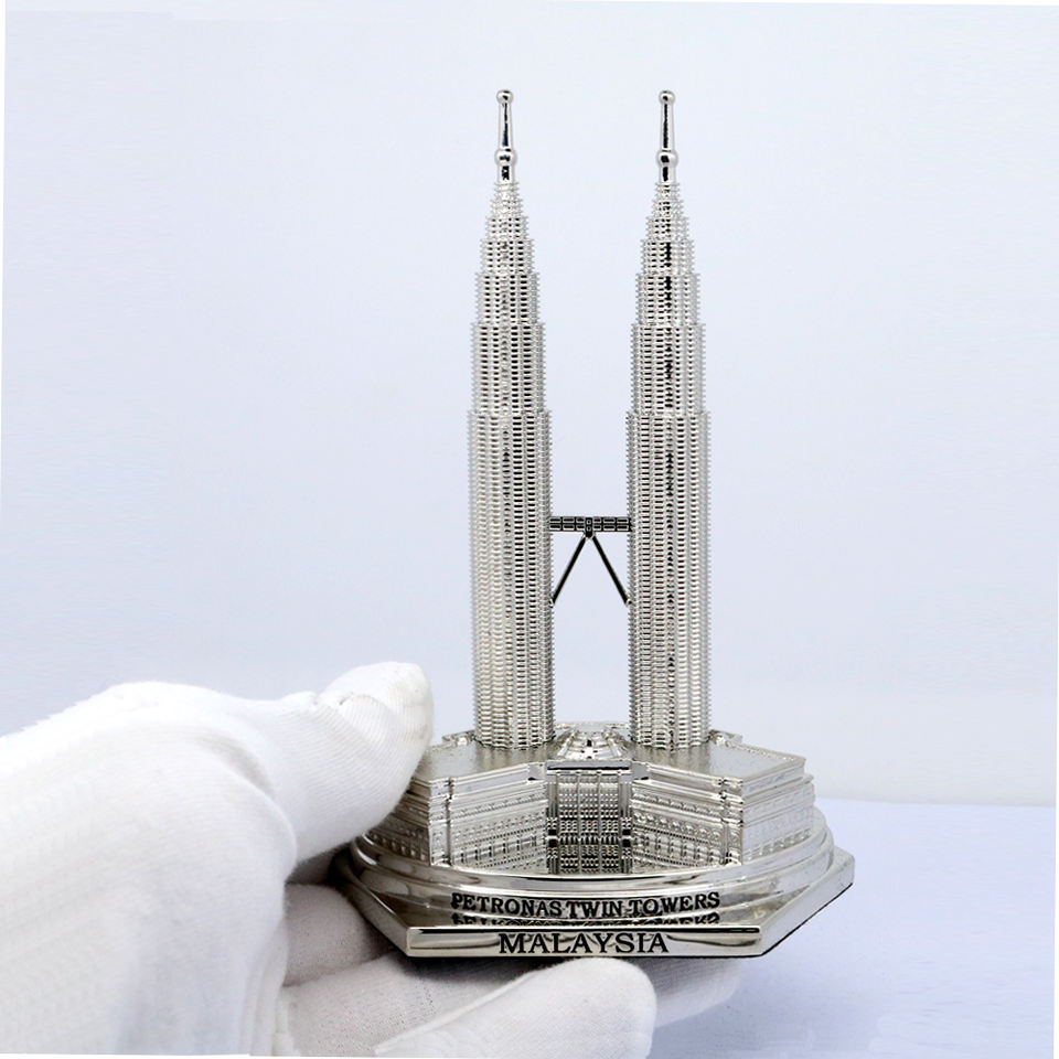 การทำแบบจำลองอาคารปิเตอร์นาส ทาวเวอร์ส แบบ 3 มิติ อัตราส่วน 1:2500 ของขวัญโลหะ แบบจำลองอาคารชื่อดัง 3 มิติ