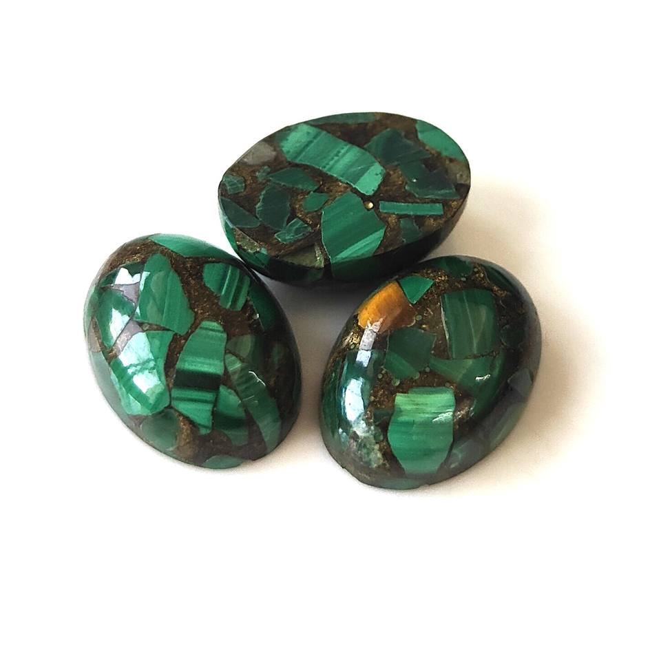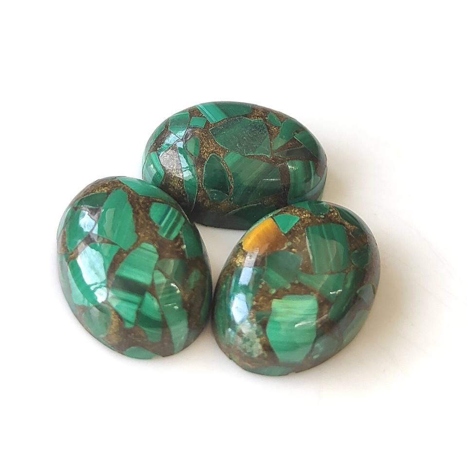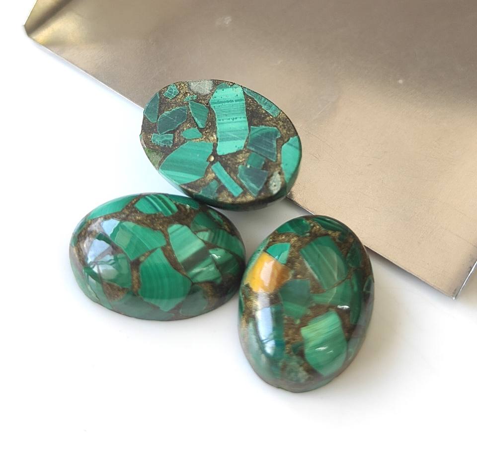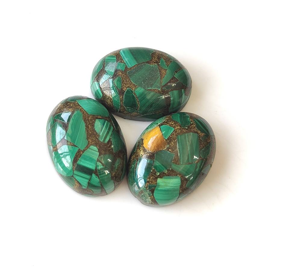 มาลาไคต์ทองแดงรูปไข่ทรงคาโบชอง ขนาด 3x5มม.-20x30มม. หลังแบน สีเขียว เปลี่ยนสีได้ เหมาะสำหรับทำเครื่องประดับจากหินธรรมชาติ