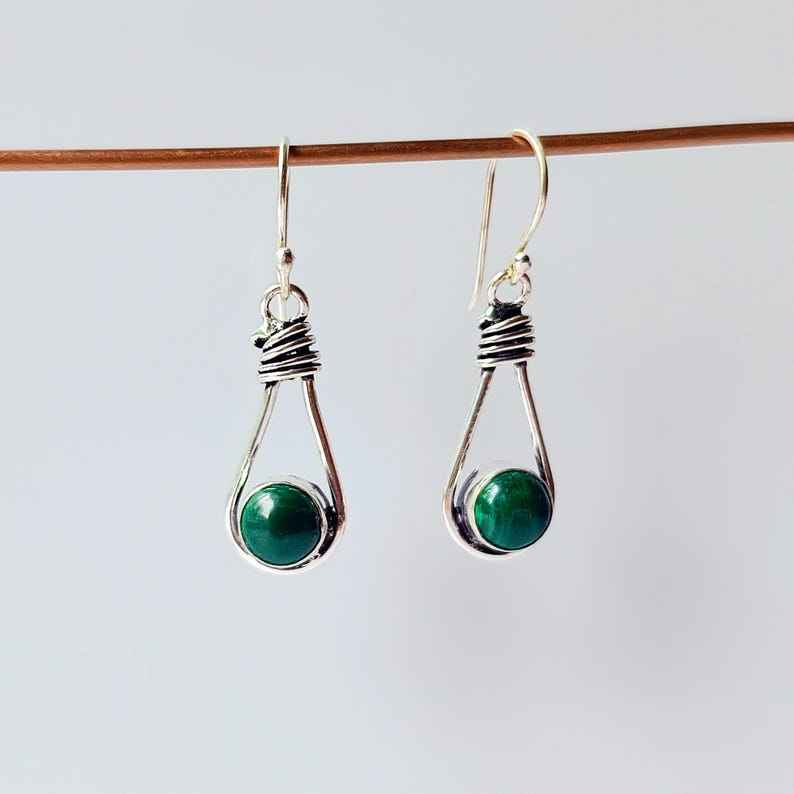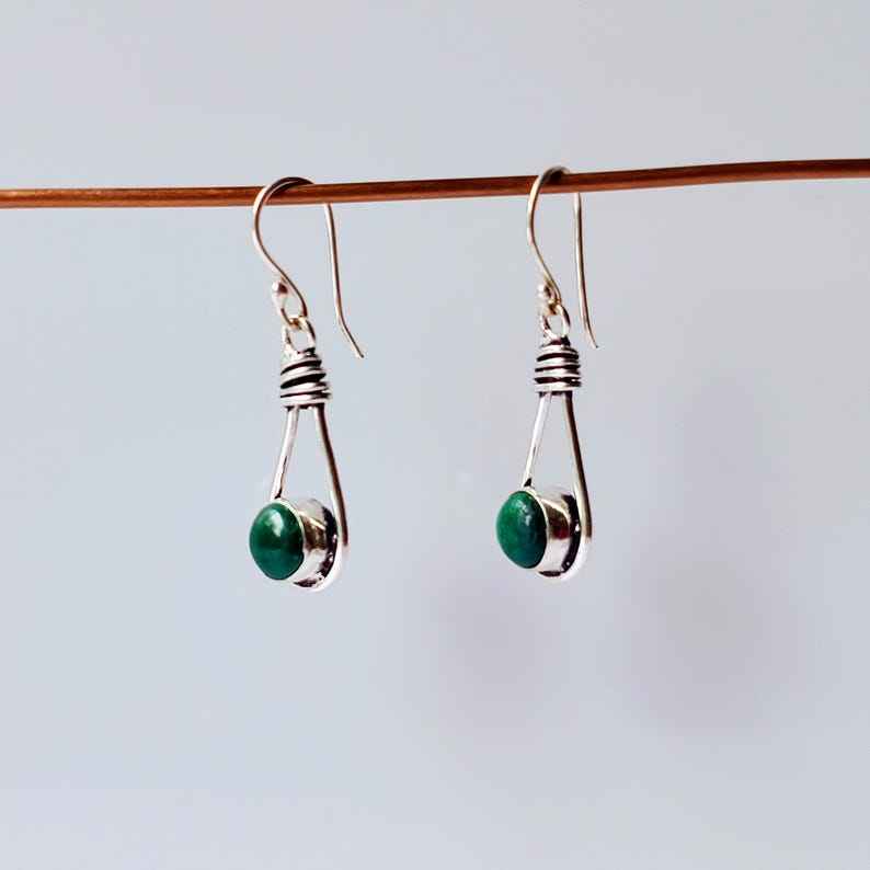 ต่างหูมาลาไคต์เงินแท้ชุบพลอยสีเขียวธรรมชาติทำด้วยมือเครื่องประดับแบบฝังขอบสำหรับผู้หญิงงานฉลองครบรอบ
