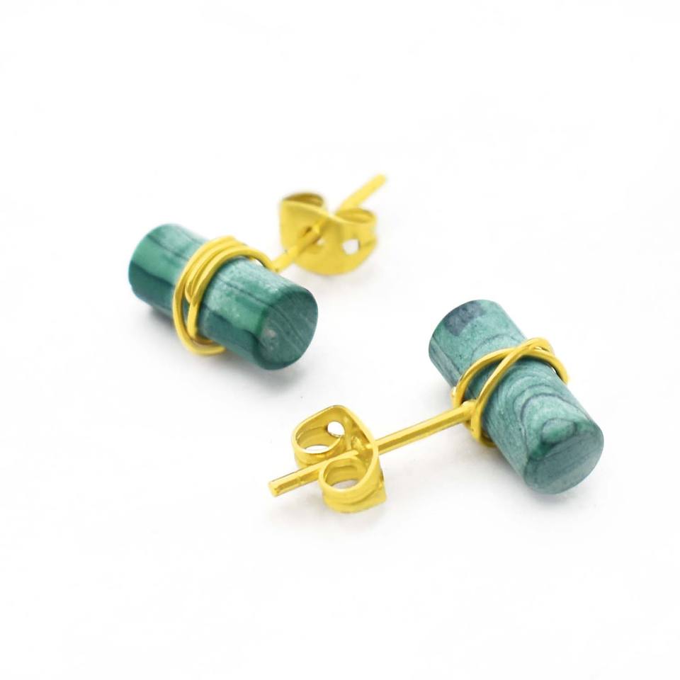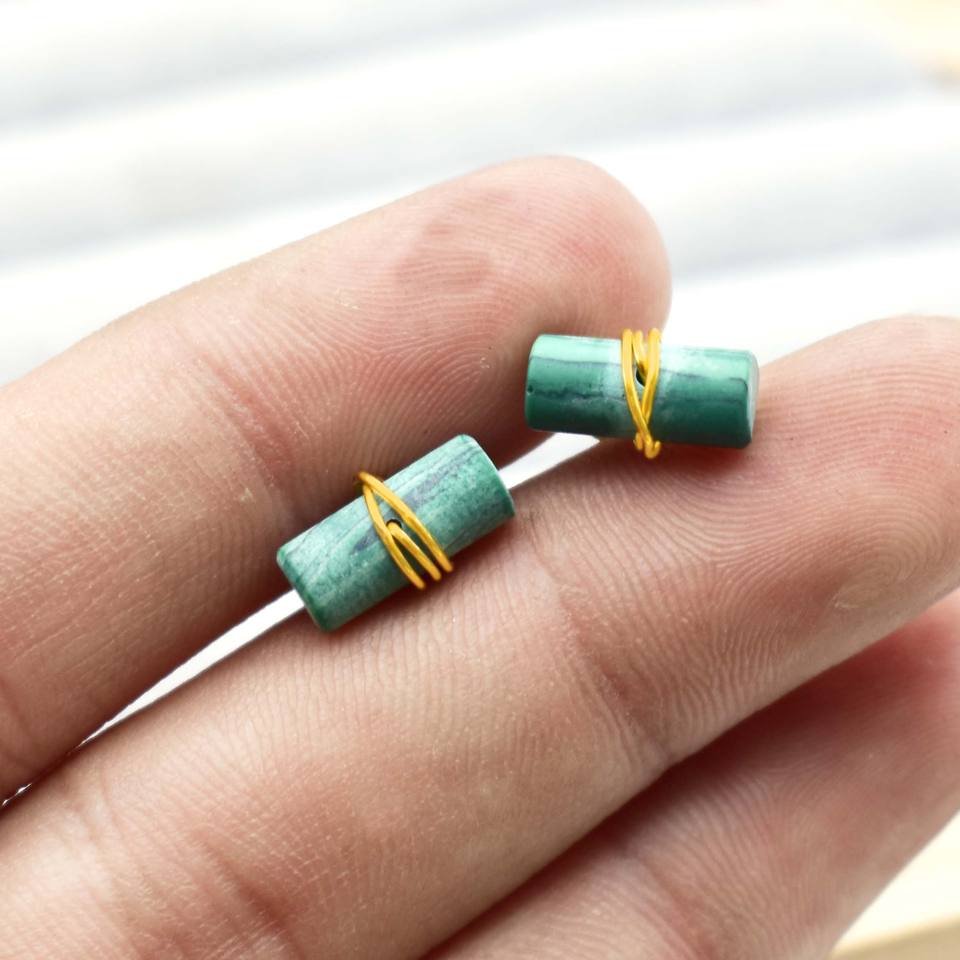 ต่างหูมรกตทรงหลอด หุ้มด้วยลวด งานฝีมือประณีต ของขวัญแทนใจสำหรับคนรัก