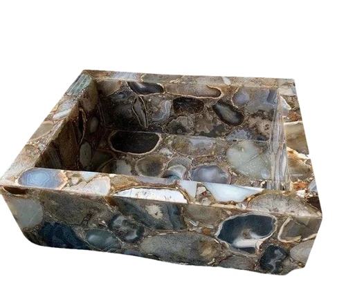 อ่างล้างหน้าหินมาลาไคต์ทรงสี่เหลี่ยมผืนผ้าอ่างล้างหน้าคริสตัลอาเกตพร้อมที่ระบายน้ำสำหรับเคาน์เตอร์อ่างล้างหน้าหรือวิลล่า