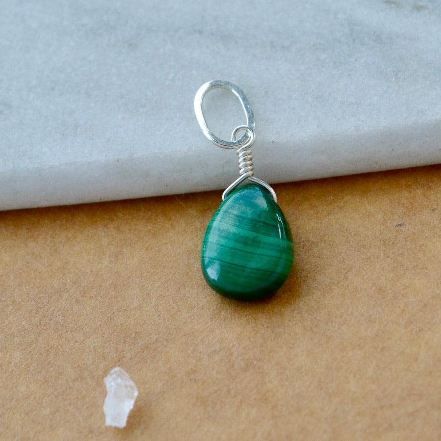 จี้มาลาไคต์ทรงหยดน้ำ พลอยสีเขียว ชุบทอง งานแฮนด์เมด เครื่องประดับสำหรับผู้หญิง