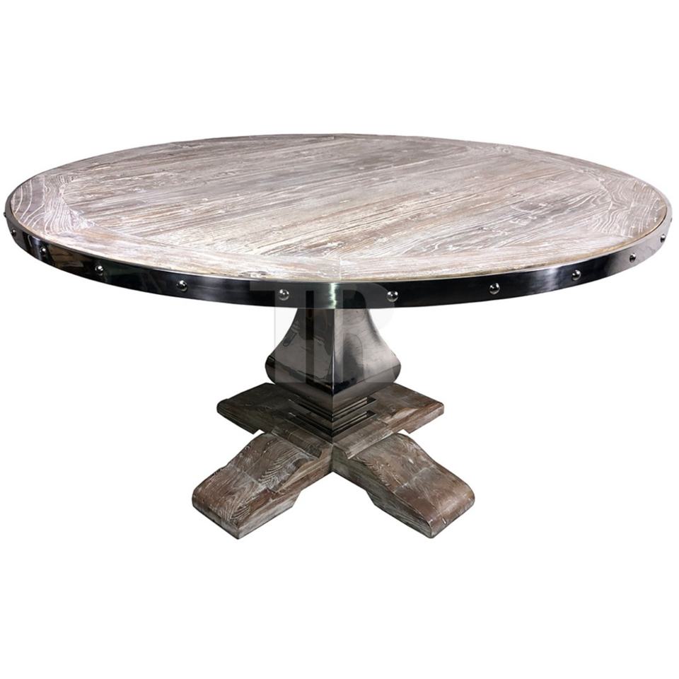 โต๊ะอาหารทรงกลมคลาสสิก ทำจากไม้จริงรีไซเคิลและสแตนเลสสตีล