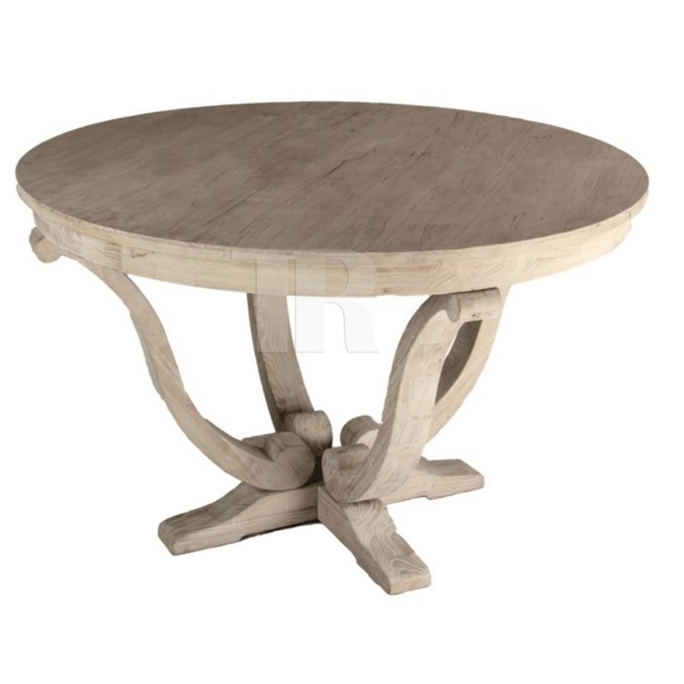 โต๊ะอาหารทรงกลมคลาสสิก ไม้เนื้อแข็งรีไซเคิลจากมาเลเซีย พร้อมฐานสแตนเลส
