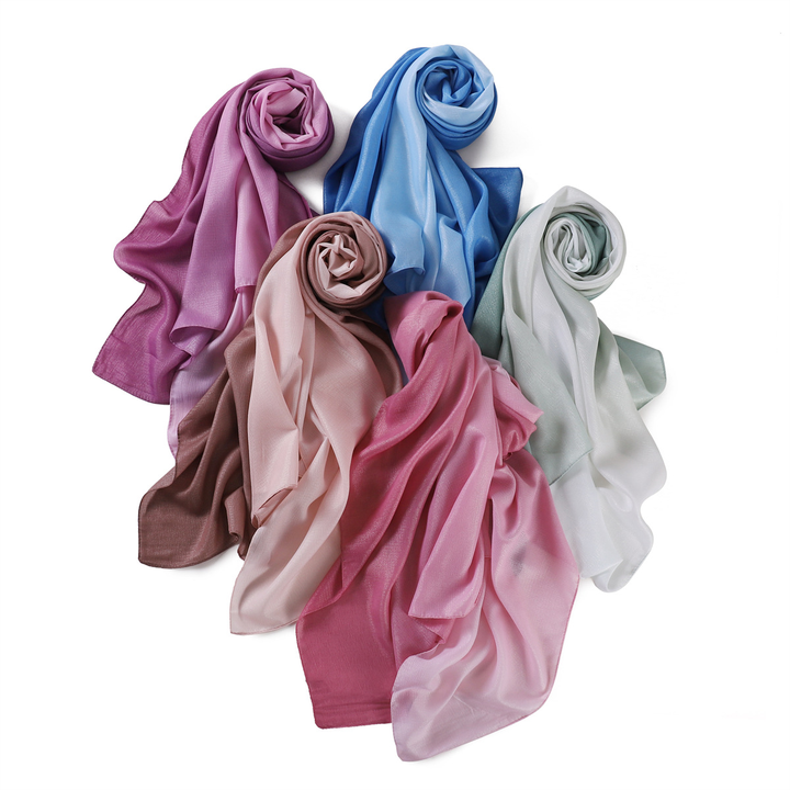 ผ้าพันคอฮิญาบแบบไล่ระดับสีของมาเลเซียผ้าพันคอชาติพันธุ์ไล่ระดับสีผ้าโพลีเอสเตอร์สีล้วนสำหรับผู้หญิงมุสลิมขายส่ง